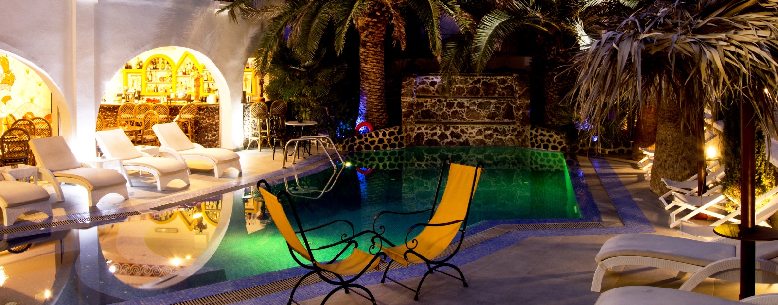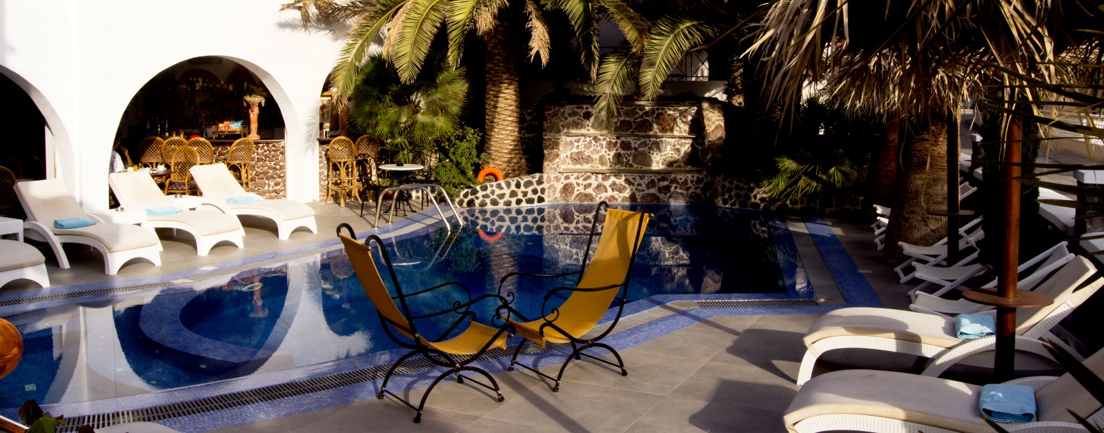 Around the pool there are sun loungers and umbrellas arranged thus enabling bathers to swim or relax sipping a decoction of the highly organized bar.